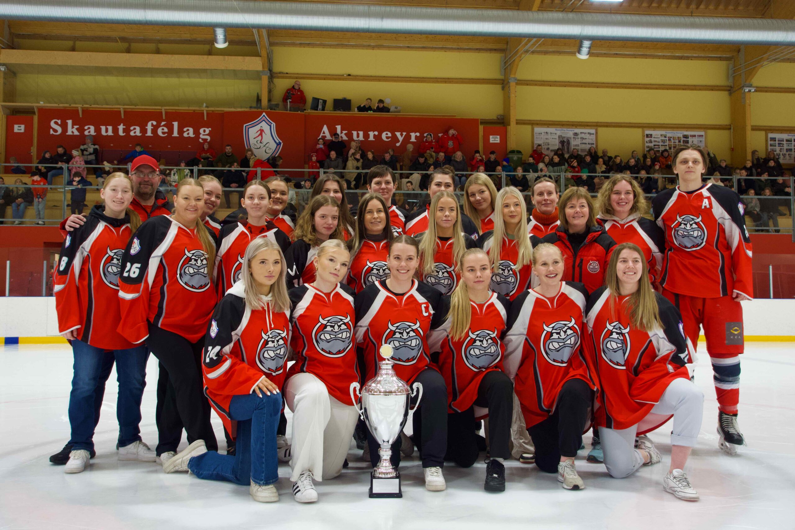 SA og Fjölnis konur áttust við í seinni leik dagsins. SA konur voru búnar að tryggja sér deildarmeistara titilinn fyrir nokkru og var bikarinn afhentur fyrir leikinn. Viðar Garðarsson, framkvæmdastjóri ÍHÍ, afhenti Ragnhildi Kjartansdóttur, fyrirliða SA, bikarinn. Við hjá íshokkí.is óskum SA til hamingju með titilinn.