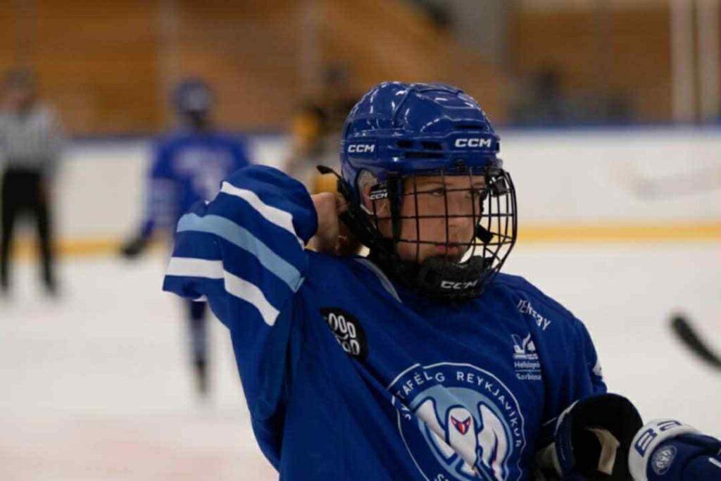 Aðspurð segir hún að vel hafi verið tekið á móti henni, aðstaðan frábær og hokkíið gengur vel!
