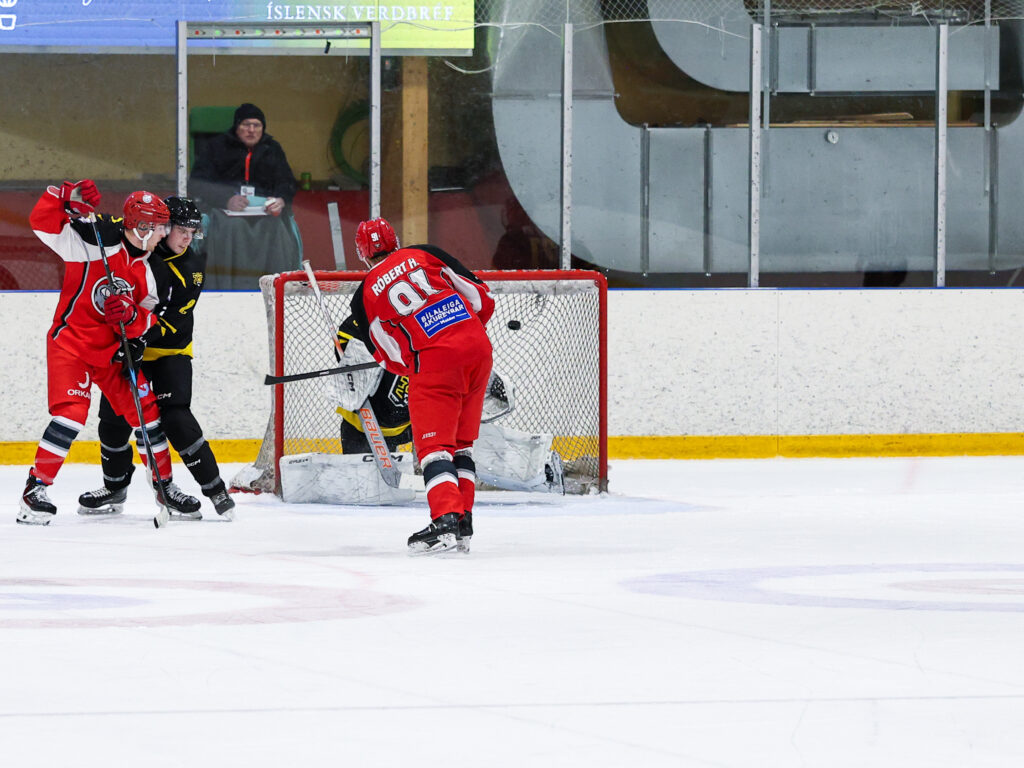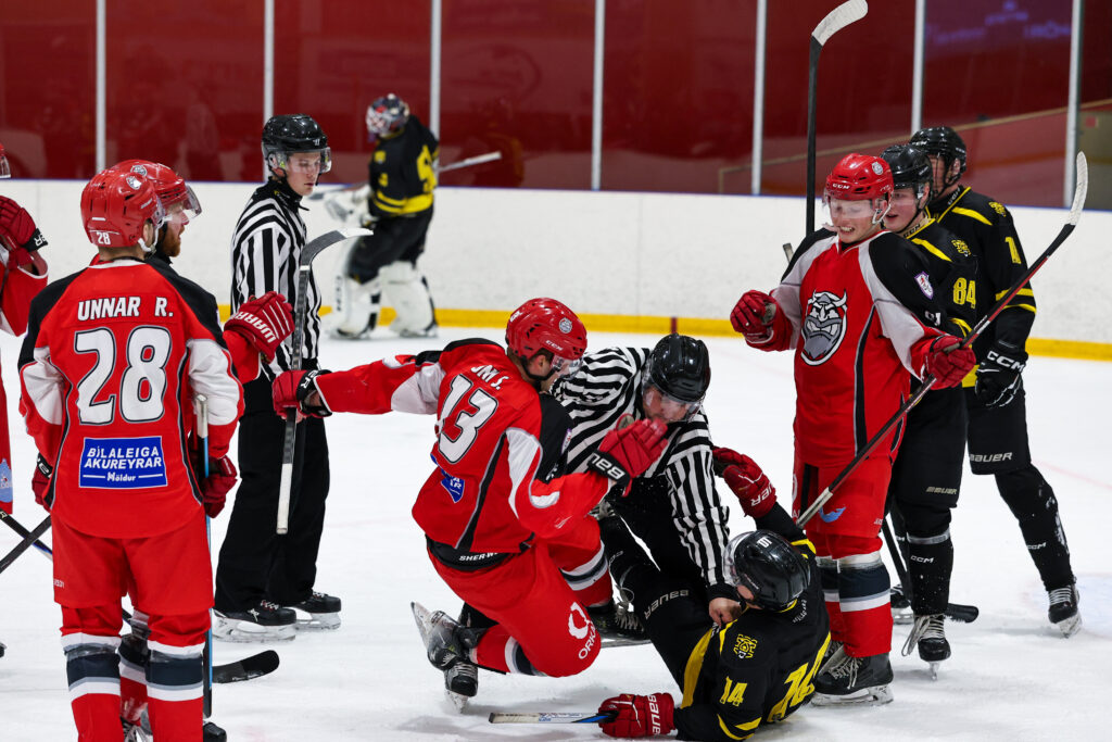 Það var hart barist í Skautahöllinni á Akureyri í gær þegar SA og Fjölnir mættust í Toppdeilda karla. Heimamenn í SA höfðu betur 4–3 í spennandi og jafnri viðureign þar sem bæði lið sýndu gæði og baráttu frá fyrstu mínútu til þeirrar síðustu.